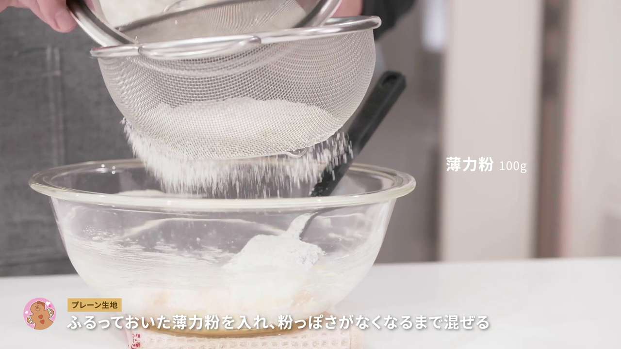 ふるっておいた薄力粉を入れ、粉っぽさがなくなるまで混ぜる- 6