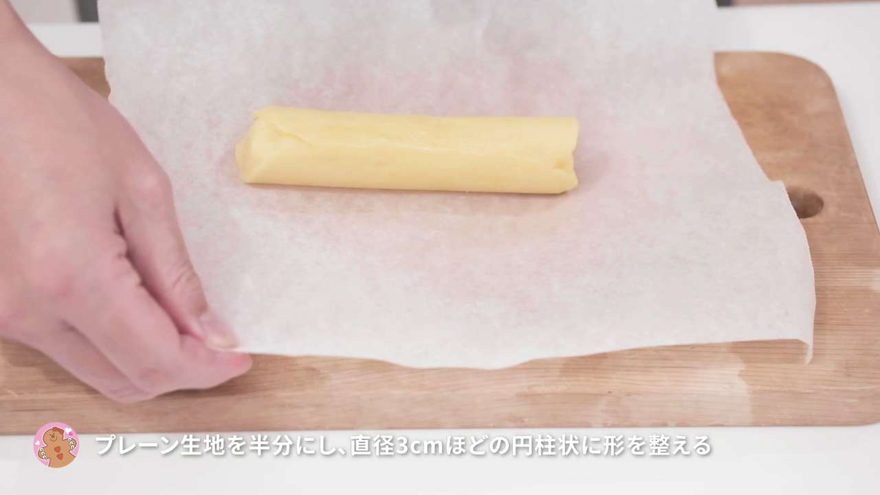 プレーン生地を半分にし、直径3cmほどの円柱状に形を整える- 2