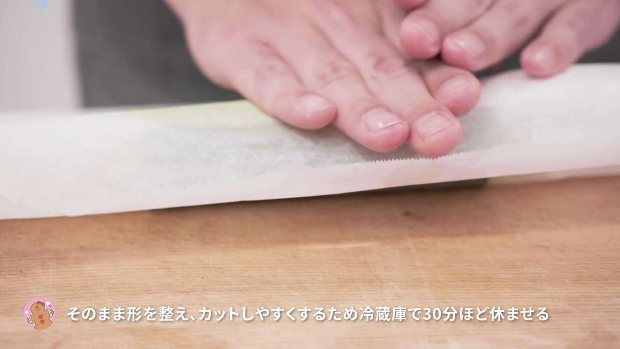 そのまま形を整え、カットしやすくするため冷蔵庫で30分ほど休ませる- 6