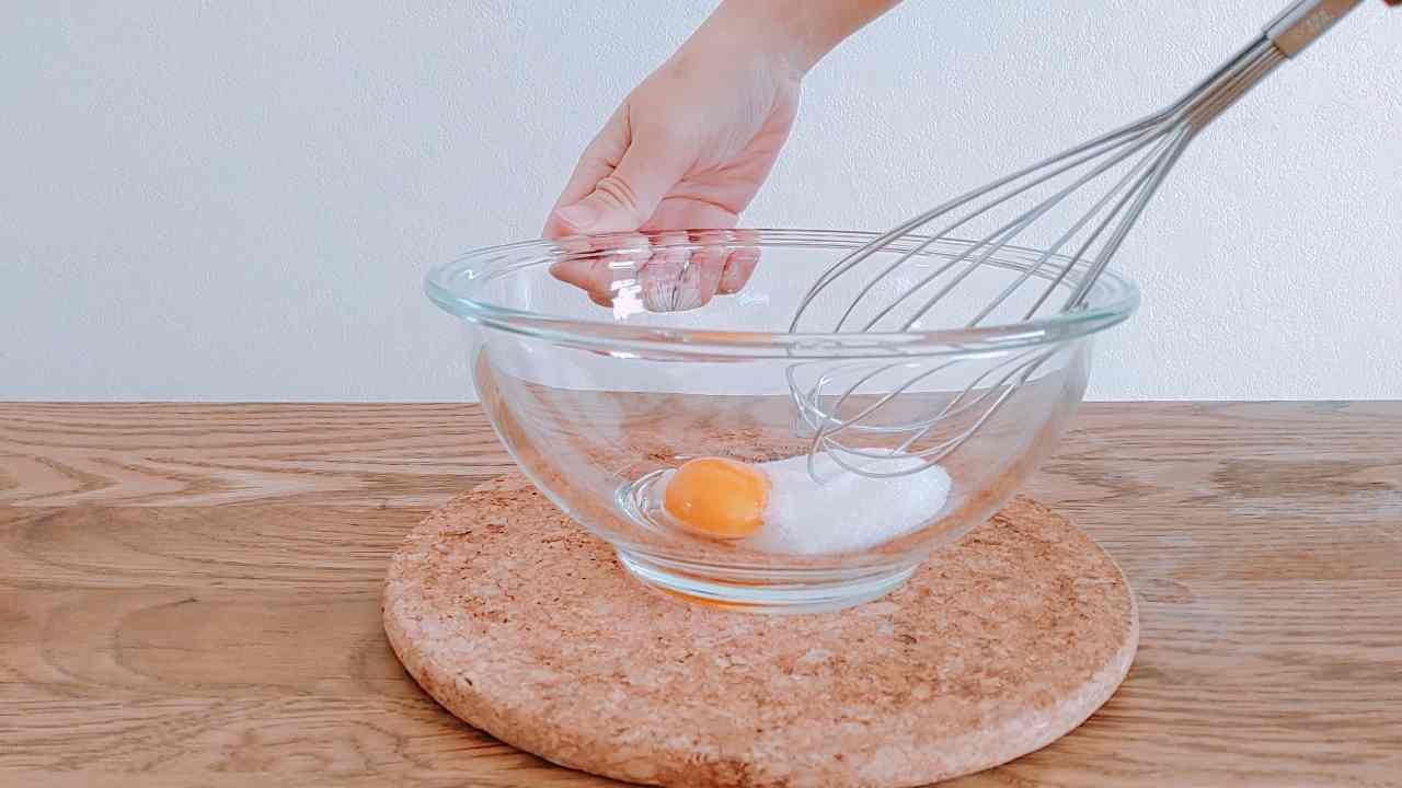 ボウルに、卵黄・グラニュー糖を入れて、泡立て器で混ぜ合わせます。- 2