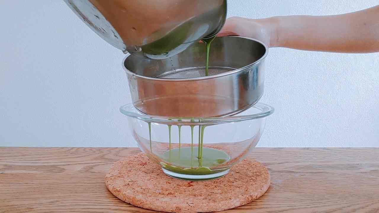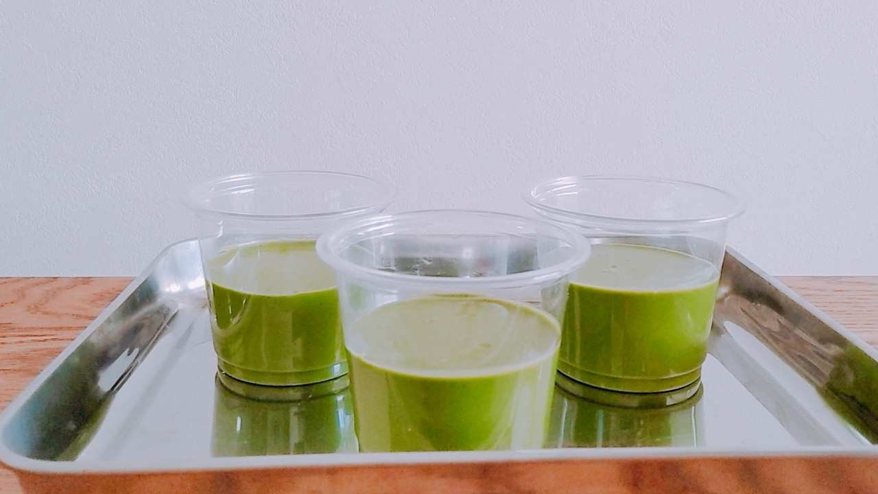 ・抹茶の粉は、混ぜる際にダマになりやすいので事前にふるっておくことが大切です。混ぜ合わせた後にさらにこすことで、よりきめの細かなプリンが出来上がります。