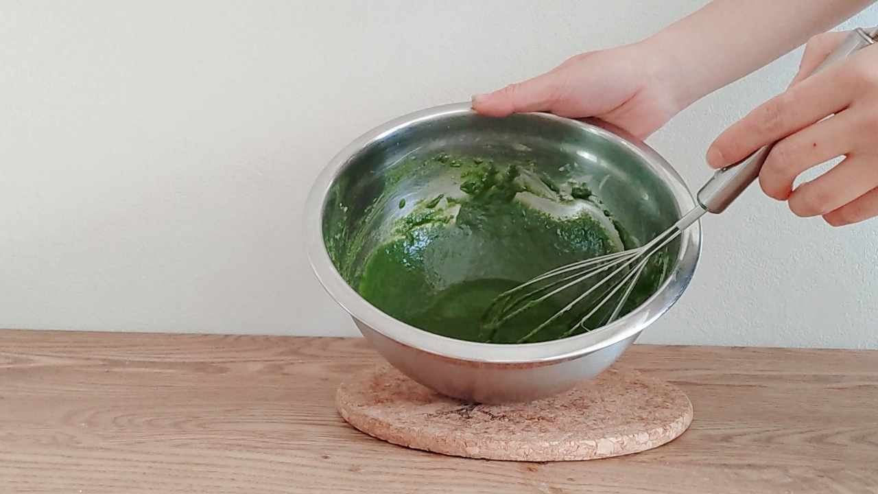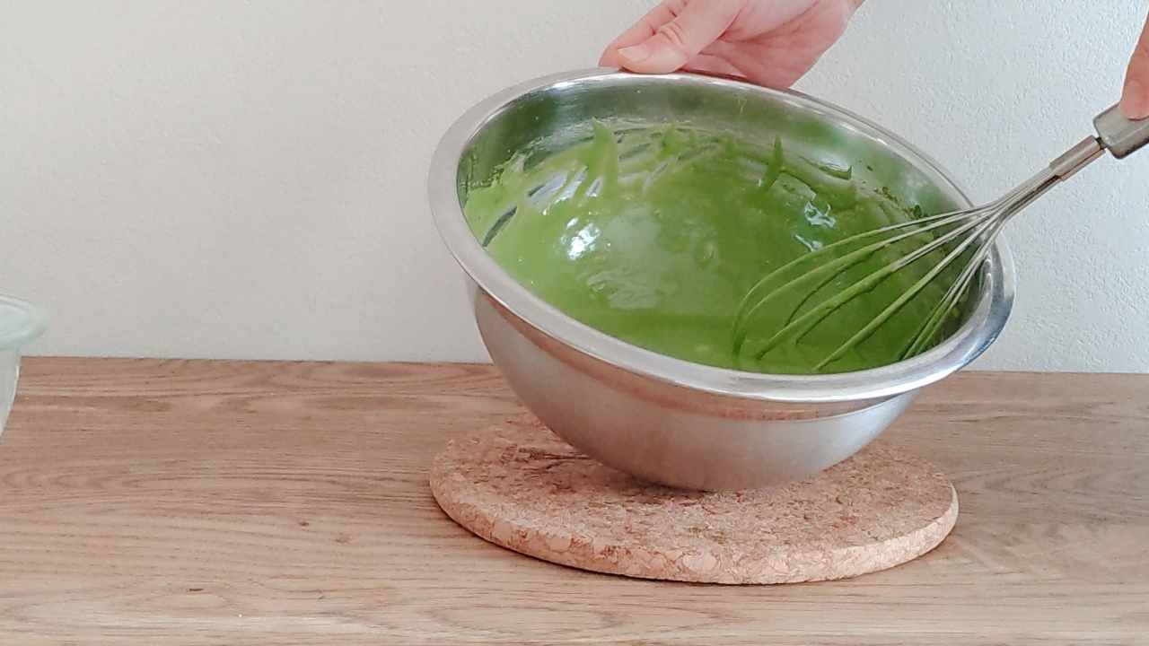 抹茶の粉を加えて、ダマがなくなるまでよく混ぜ合わせます。