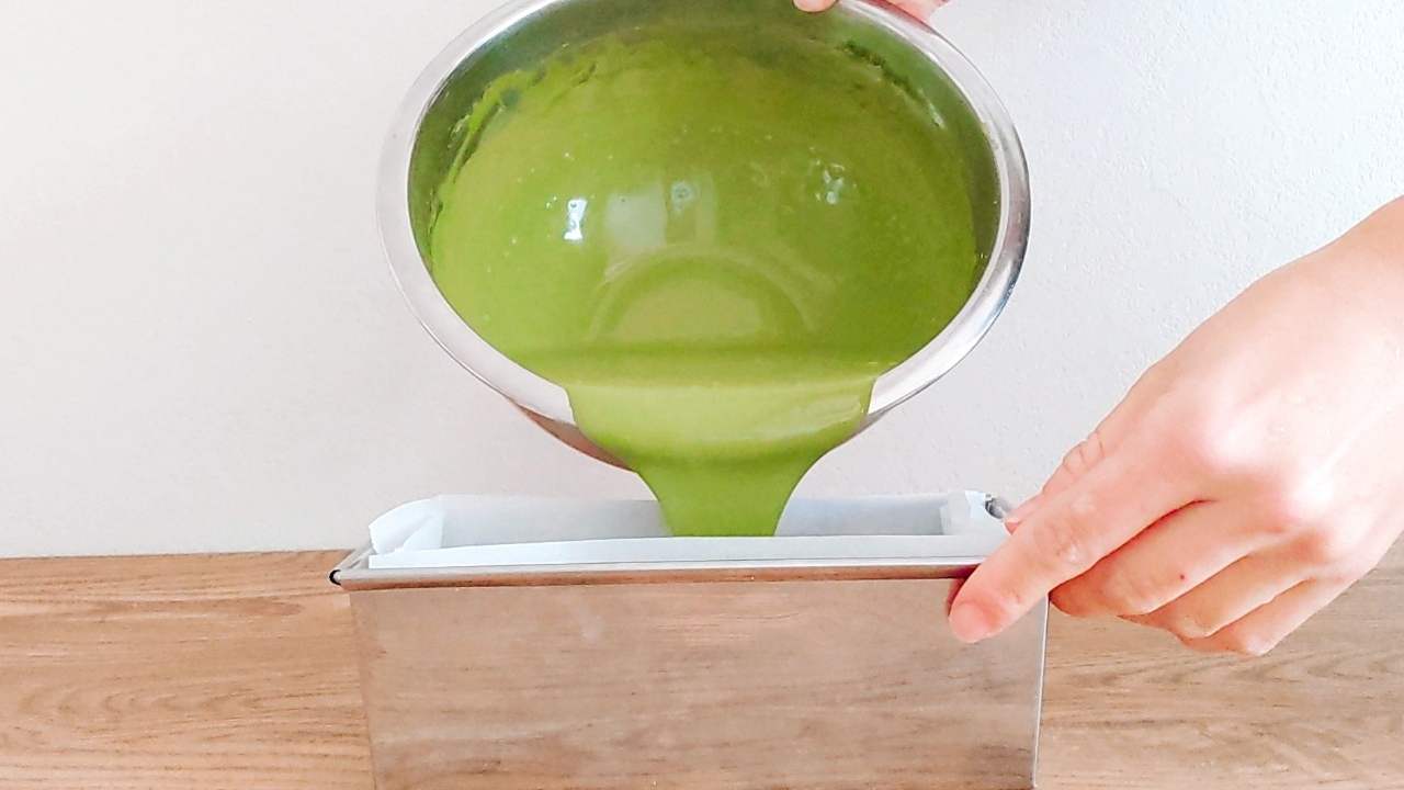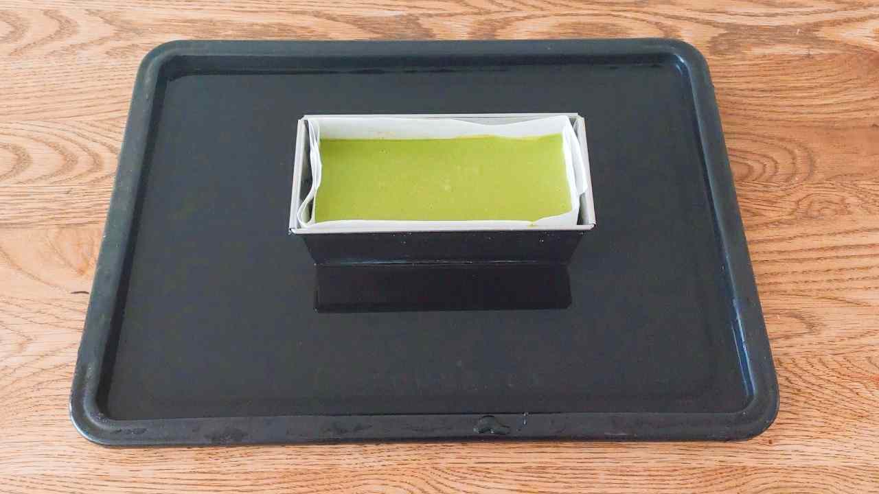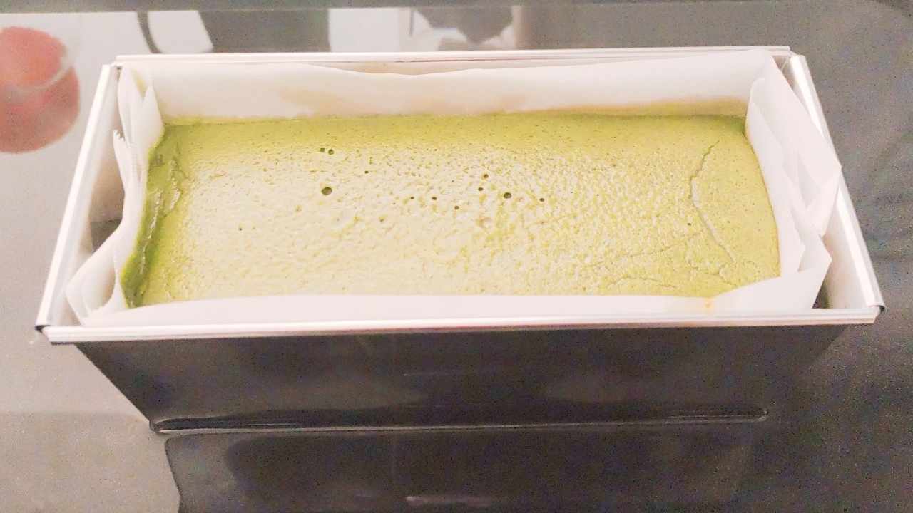 先程の生地を型に流し込んだら、気泡を抜いておきます。