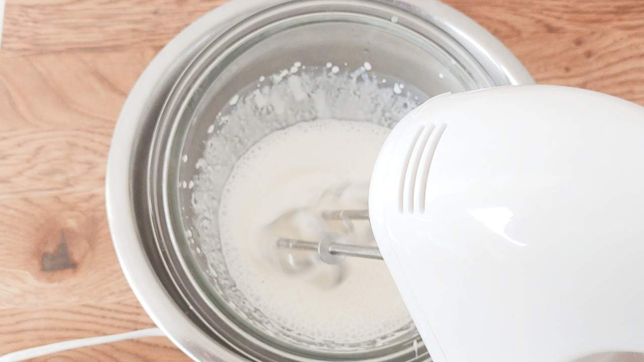 生クリームを8分立て程度に泡立てます。仕上げにお好みで添えて下さい。