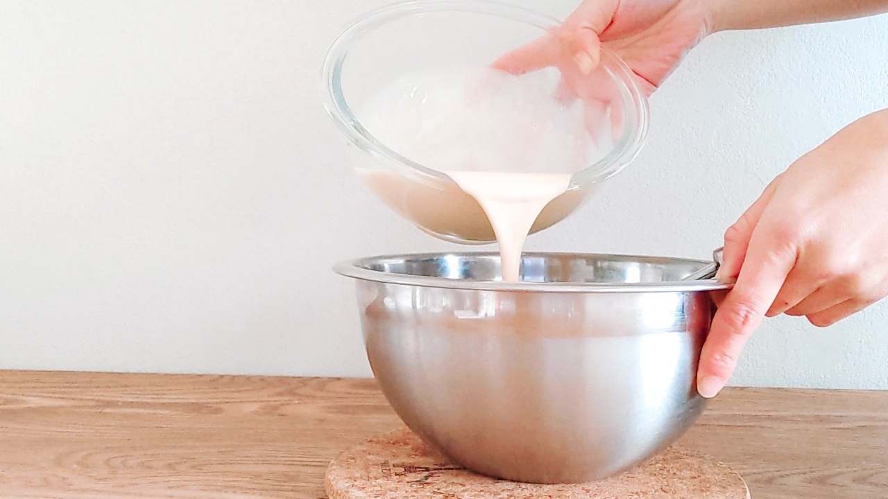 ⑤に②を加えて、よく混ぜ合わせます。これで生地が完成です。