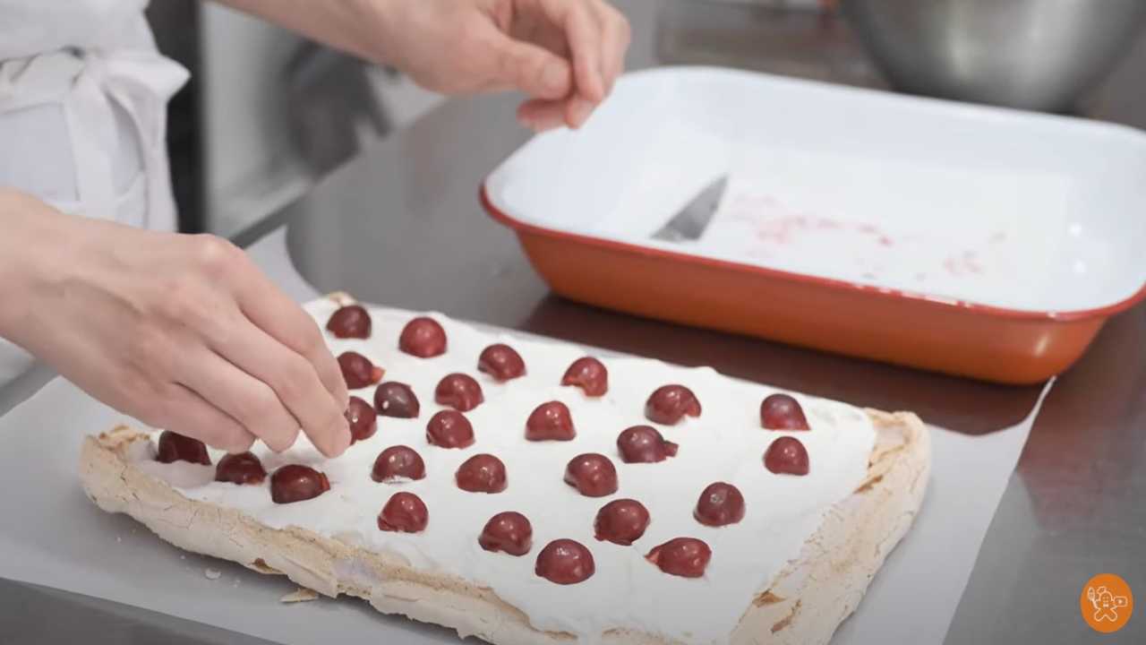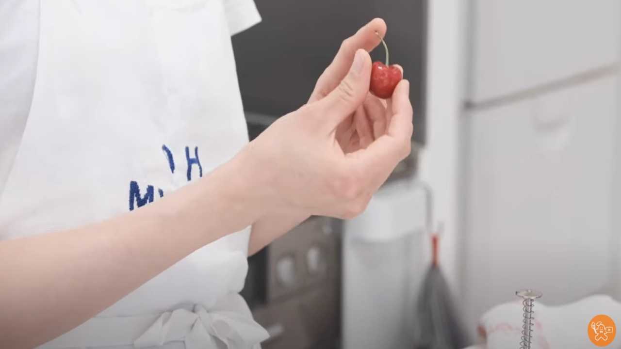 アメリカンチェリーを半分にカットしながら全体に散らす。