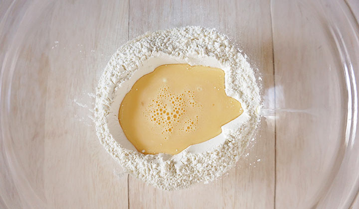 通常クレープ生地には主に薄力粉を使いますが、もちもち食感を出すためには強力粉を使います。