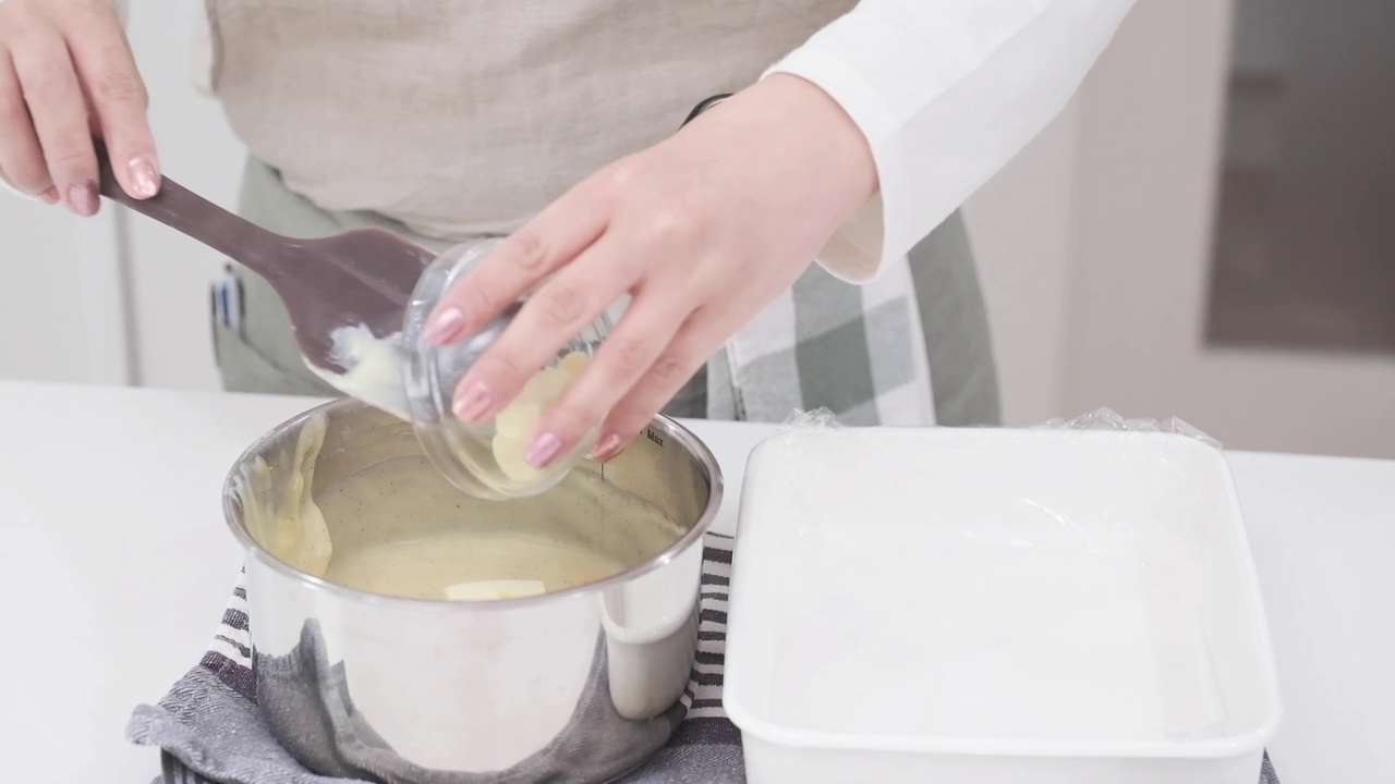 バットに流し入れ、ラップを密着させて冷蔵庫で約1時間急冷する。