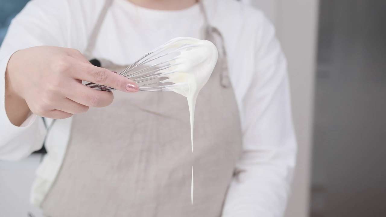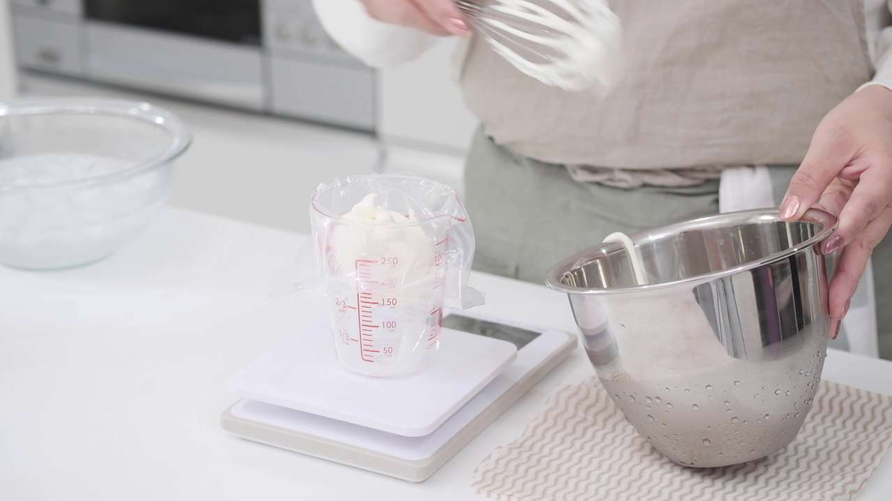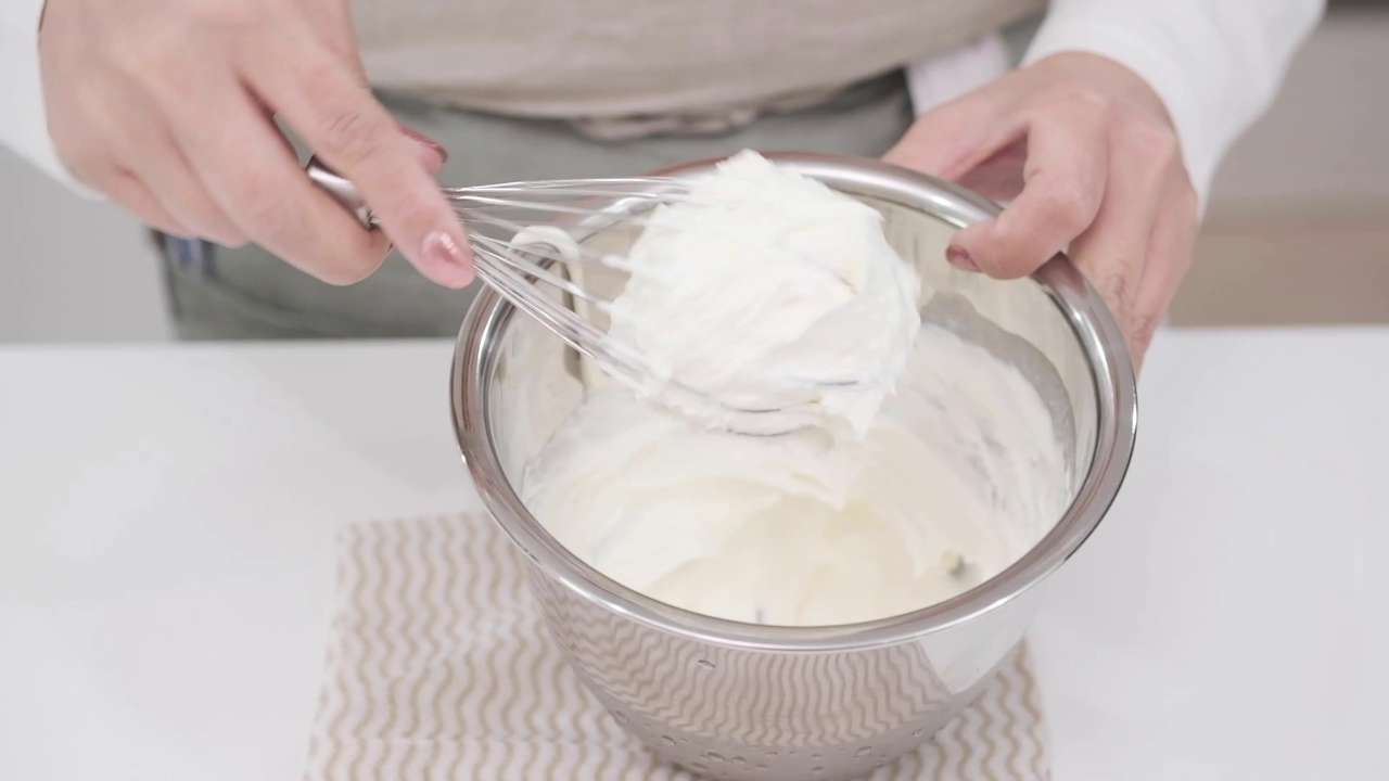 生クリームにグラニュー糖を加えて、7分立てにする。- 2