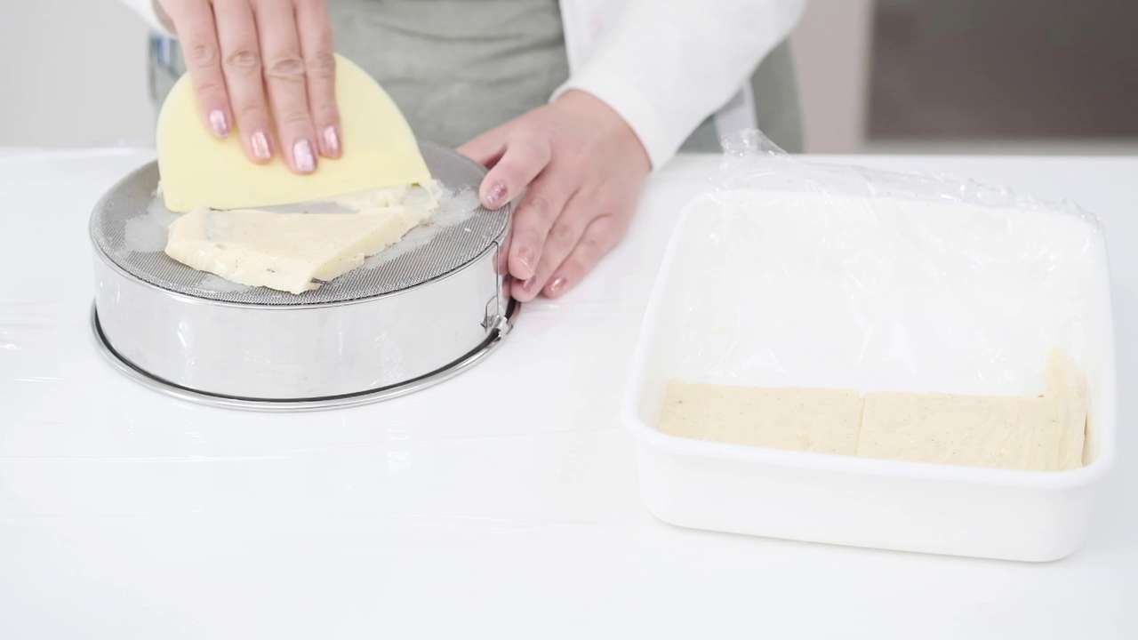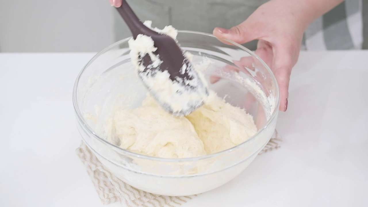 冷やしたカスタードクリームを漉して、ゴムベラでなめらかな状態にする。- 5