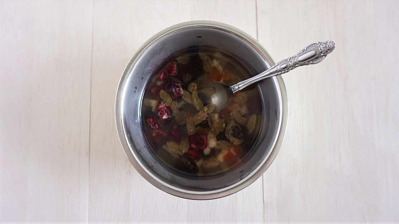 しっかり洋酒に漬けたドライフルーツが、ふわふわアイスの中でいいアクセントになり、噛めば大人の香りが広がります。