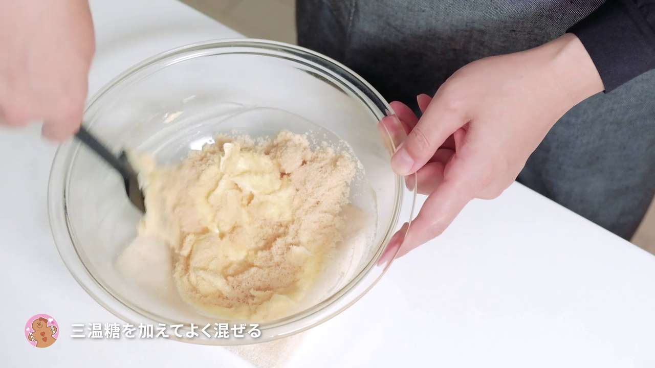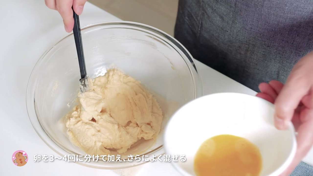 卵を3〜4回に分けて加え、さらによく混ぜる- 4