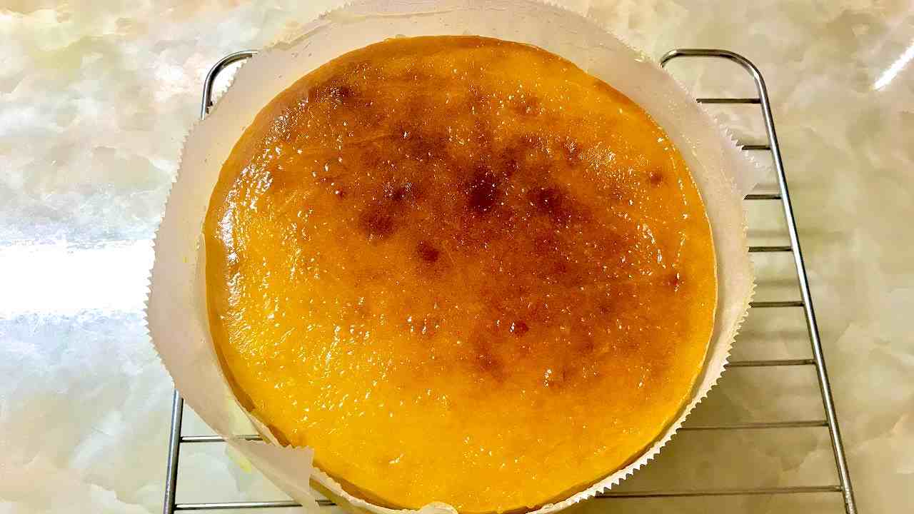 型から取り出して粗熱をとります。お好みで表面にアプリコットジャムを塗ってください。冷蔵庫で冷やして召し上がってください。