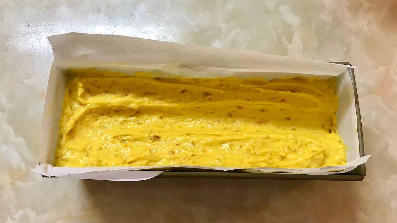 170℃のオーブンで30~35分焼きます。表面が焦げそうな場合は、アルミホイルをかぶせてください。竹串を刺して生地がつかなければ完成です。