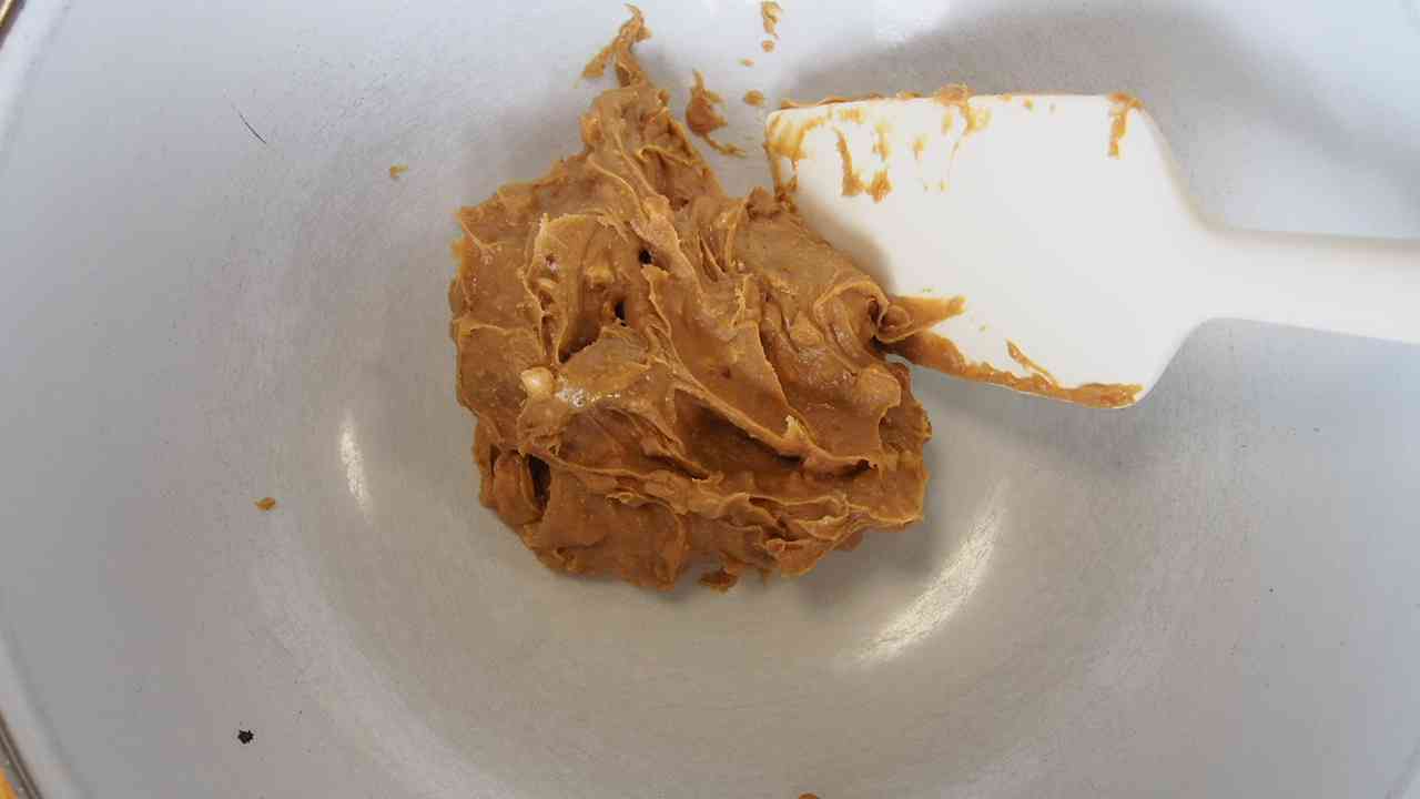 ピーナッツバターを常温におく。