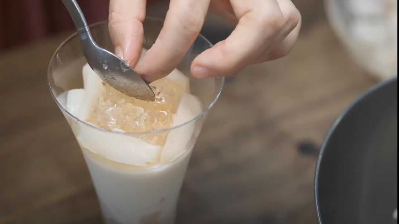 スプーンで桃のジュレを砕く。- 4