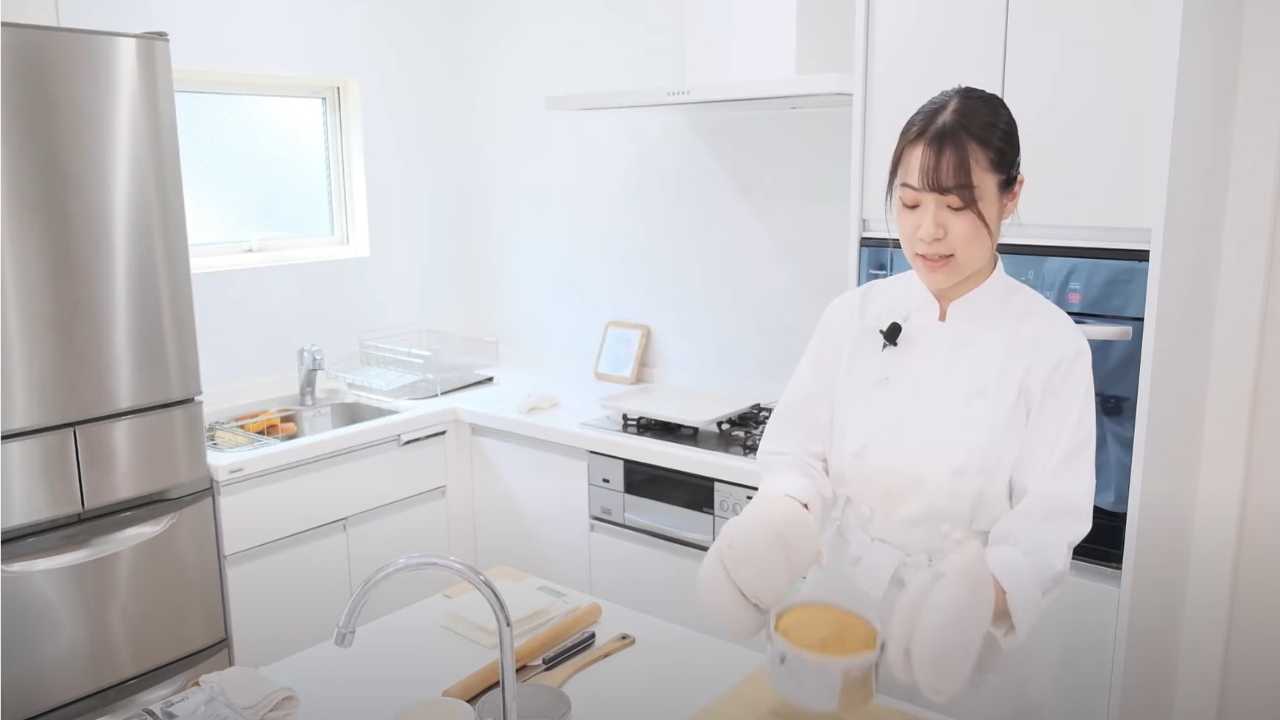焼き縮みを防ぐために上から垂直にケーキを落とす。- 14