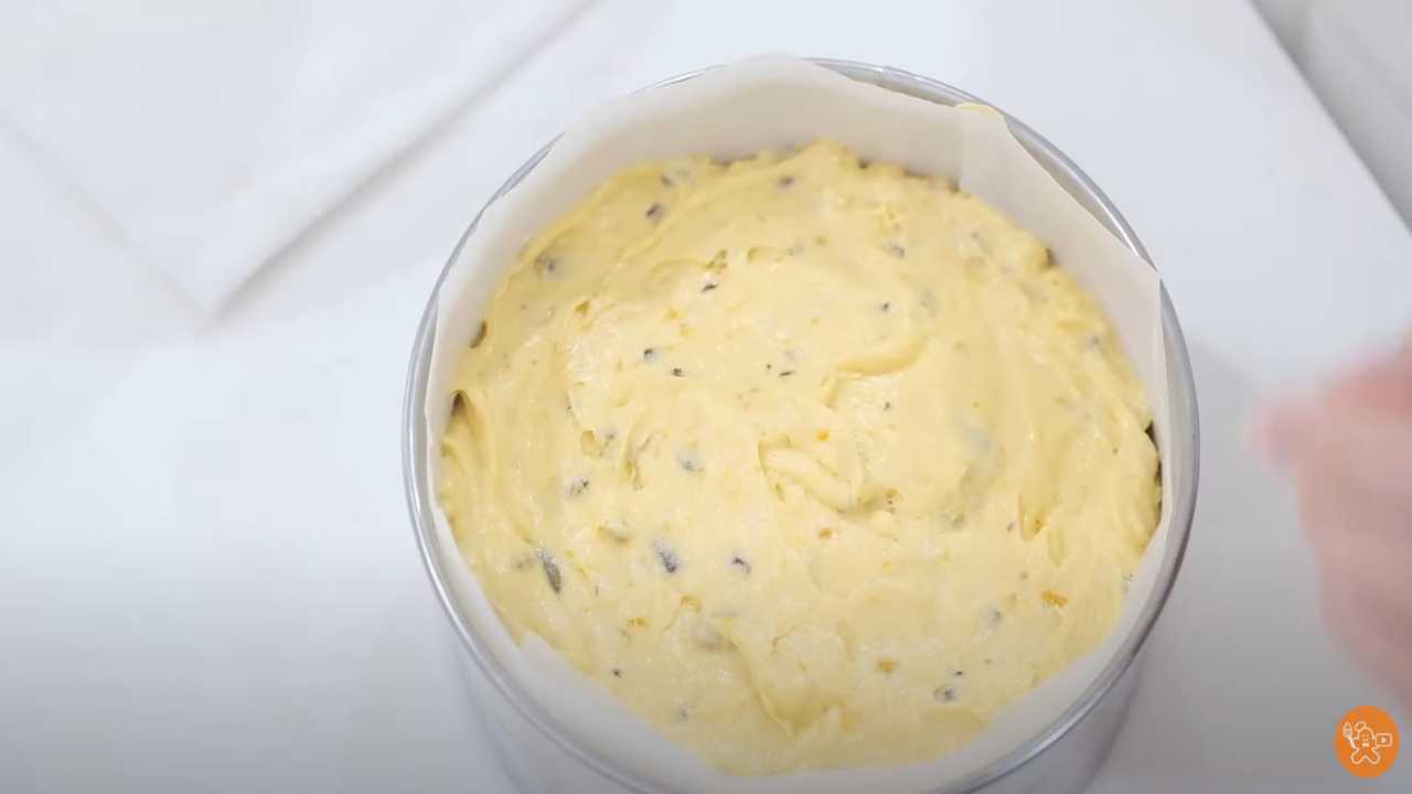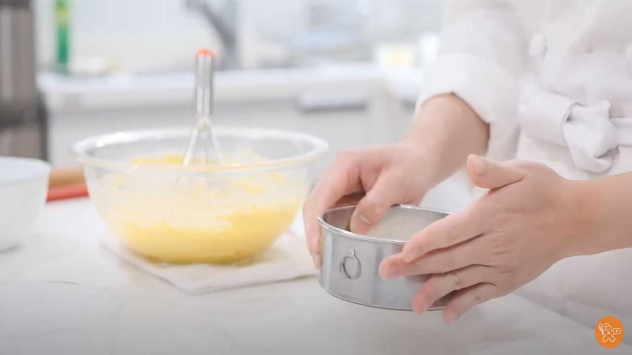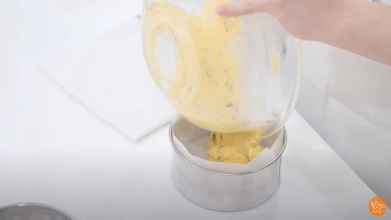 オーブンシートを敷いた丸型に流し入れる。- 11