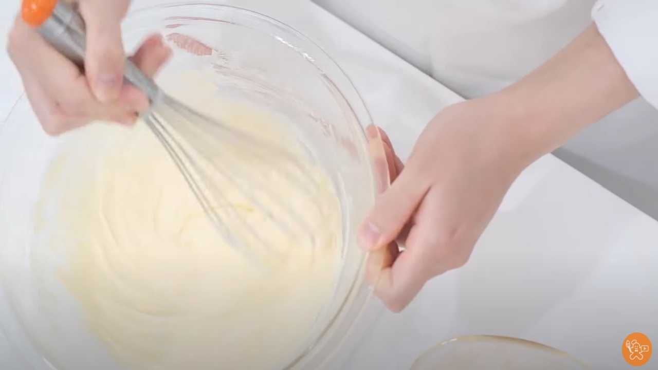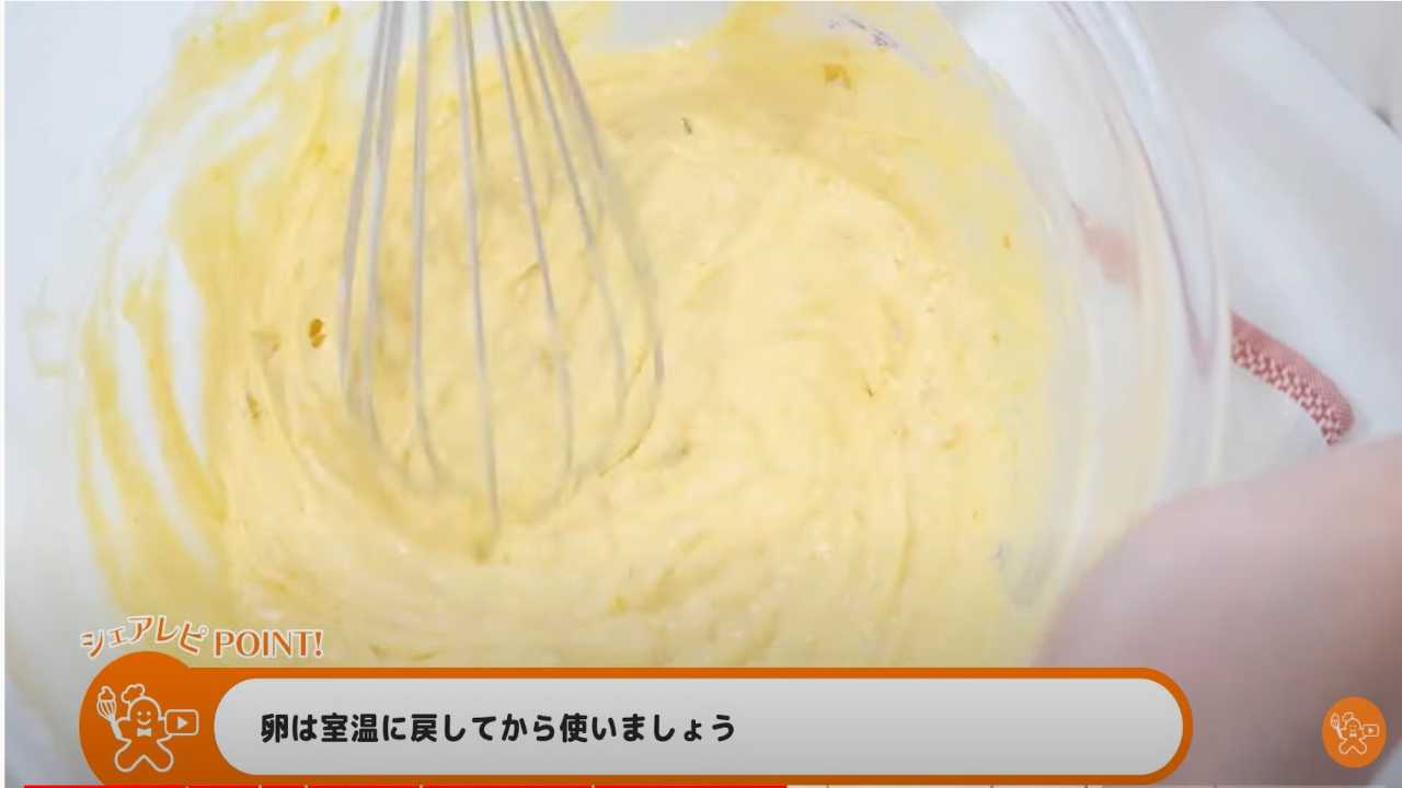上白糖を加えて、砂糖のダマがなくなるまで空気を含ませるようによく混ぜる。- 4