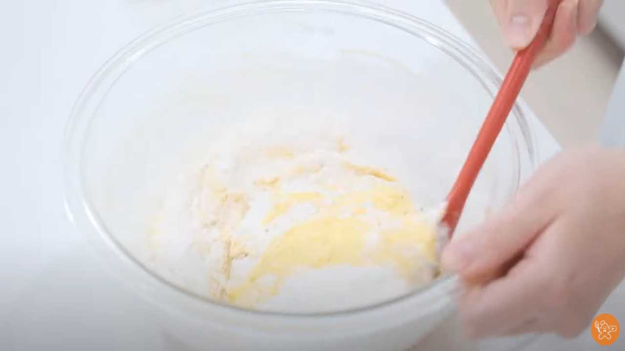 ふるった粉類をゴムベラでさっくり半分程度混ぜる。- 9