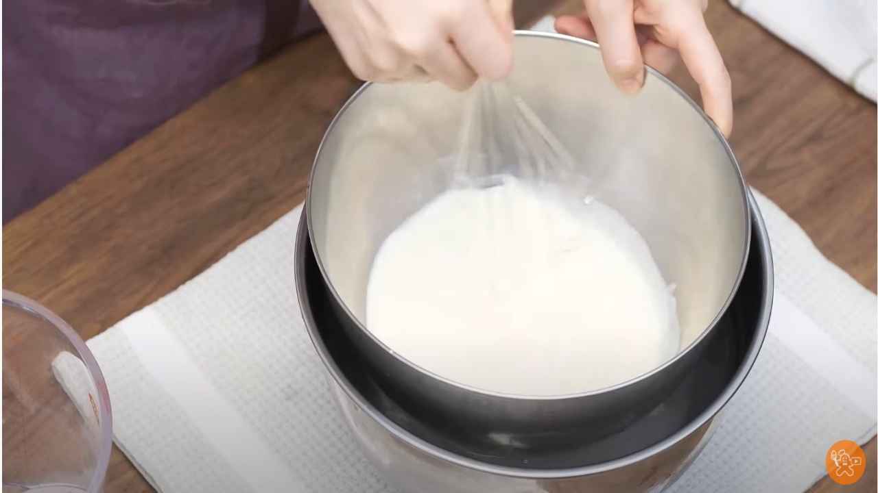 冷めたら生クリームを入れてホイッパーでかき混ぜる。