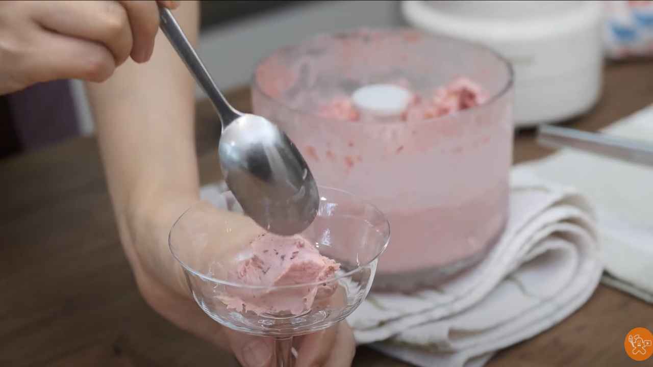 ※冷凍したアイスキューブをフードプロセッサーで混ぜることで、空気を含んでなめらかな舌触りになる。