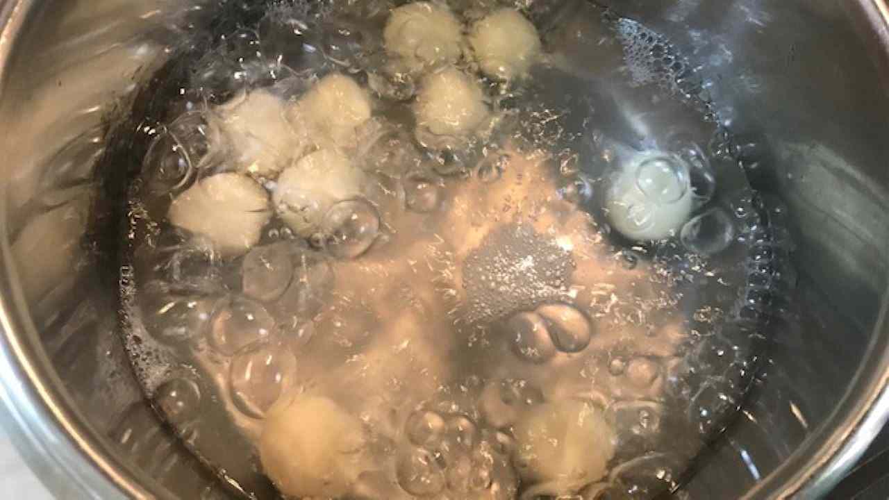 鍋にお湯を沸かし、4を入れて浮き上がったら約2分茹でます。