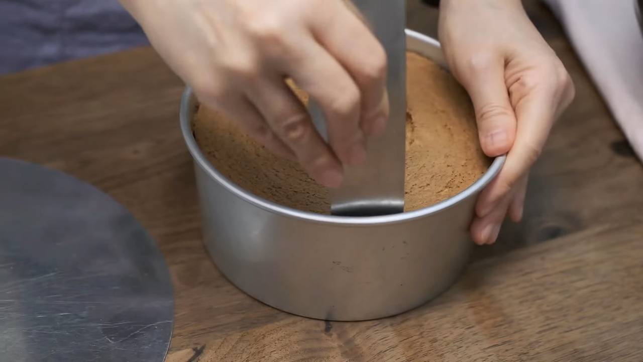 型の中心まで完全に冷めたら、パレットナイフを使って型からはずす。