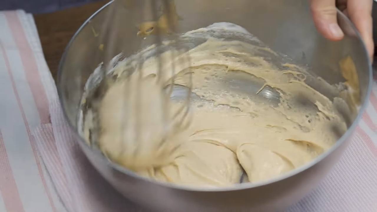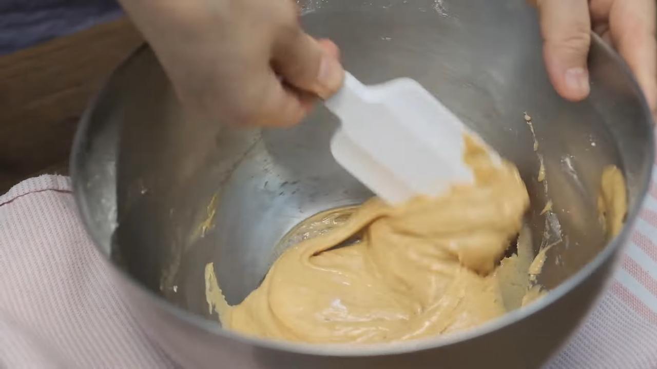 残りのメレンゲを加え、ホイッパーで周りの生地をすくって落とすように混ぜる。- 7