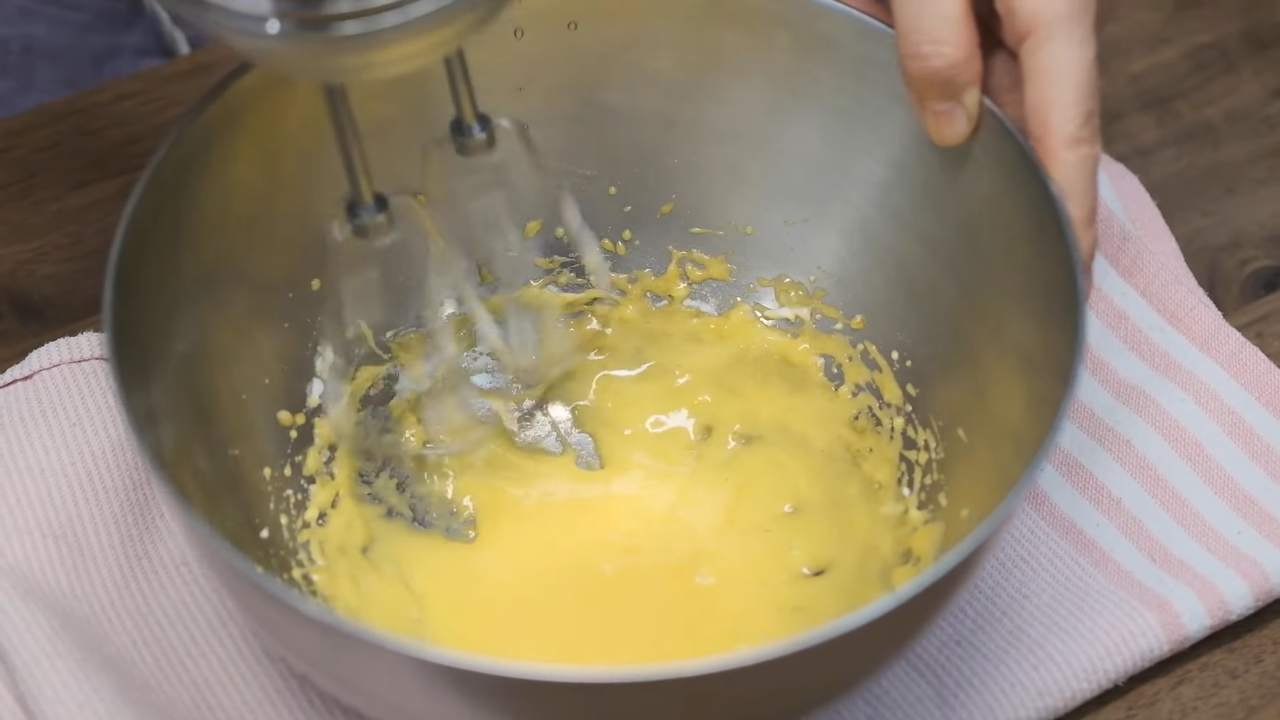 別のボウルに卵黄を入れてグラニュー糖を加え、白っぽくもったりするまで混ぜる。- 2