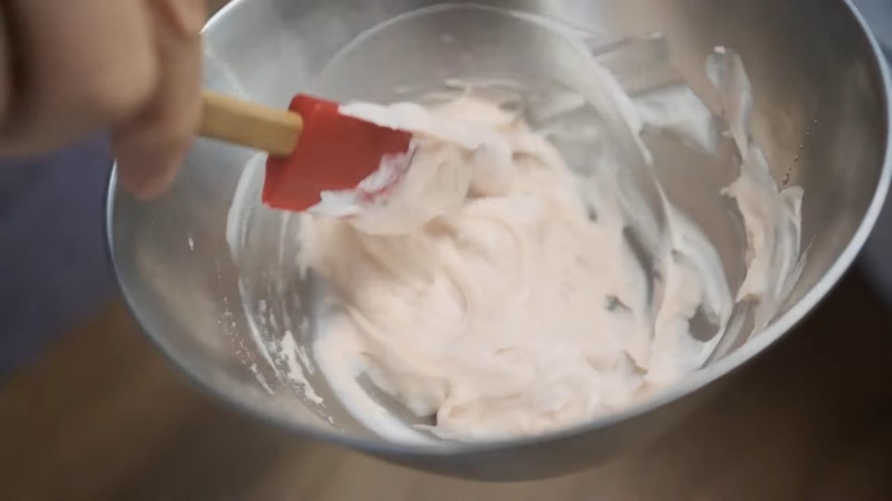 .生クリームの一部を桜ペーストに加えて混ぜる。- 4