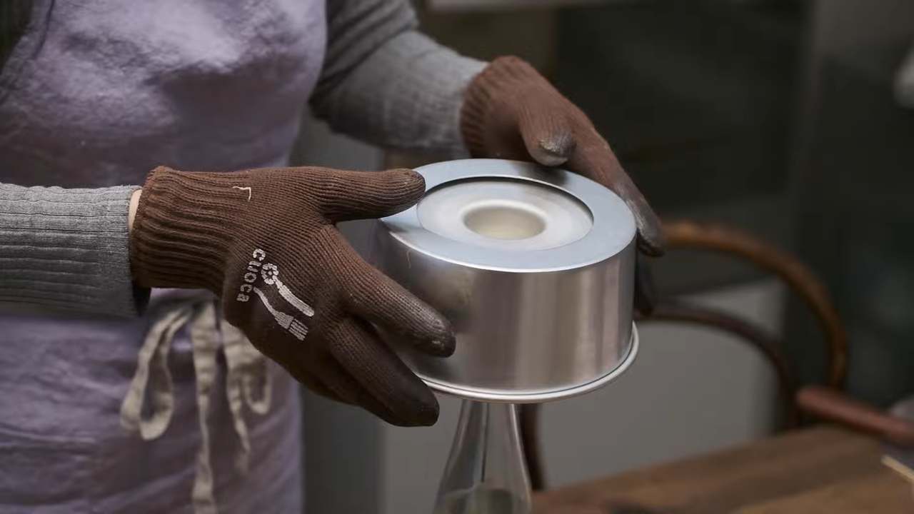 オーブンから取り出して、逆さまにした型を瓶などに挿して冷ます。