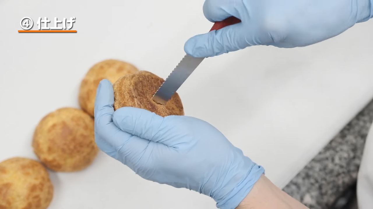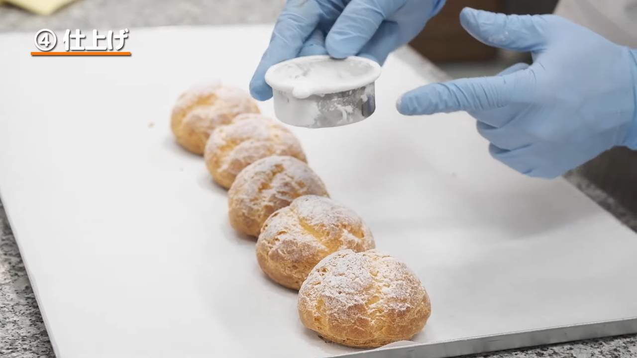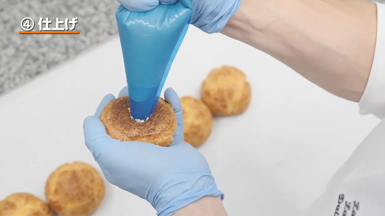 穴をあけた部分に、口金を入れてクリームを絞る。- 4