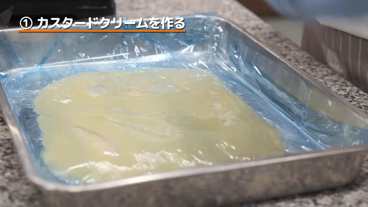 上からラップを密着させ、 冷凍庫に入れて素早く冷ます。