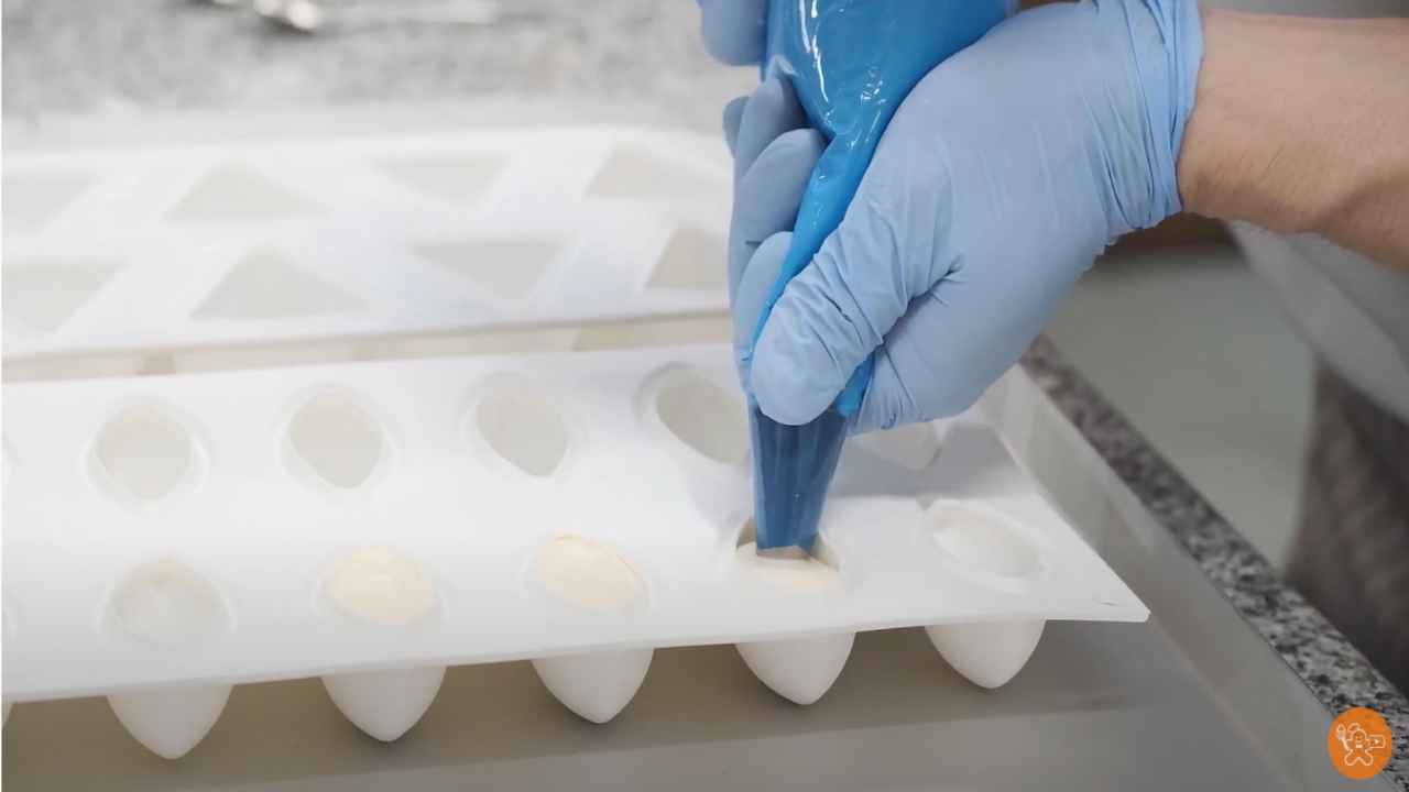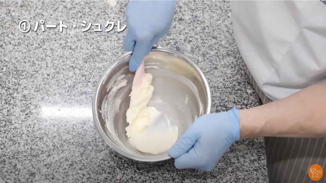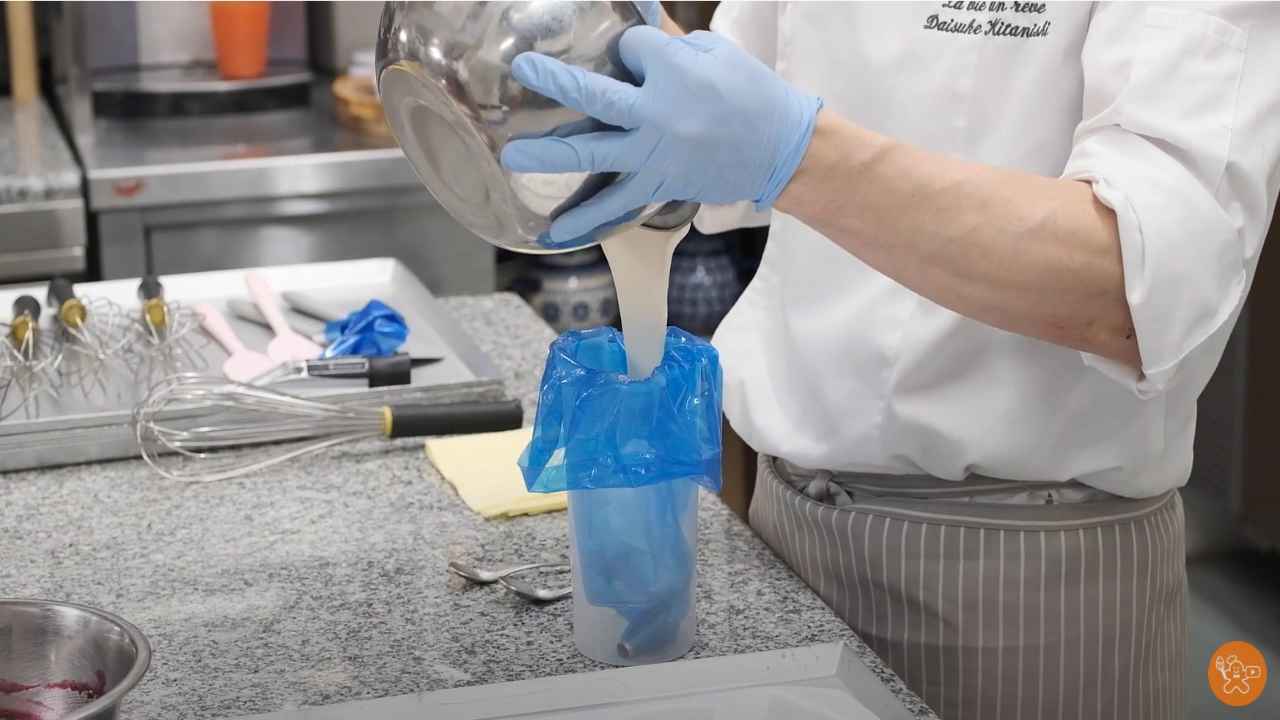 丸口金をセットした絞り袋にムース・フロマージュブランを入れる。- 2