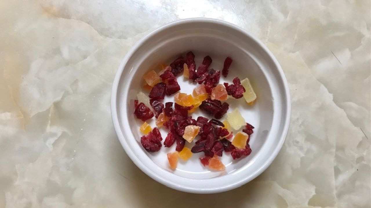 ドライフルーツは細かく刻みます。
