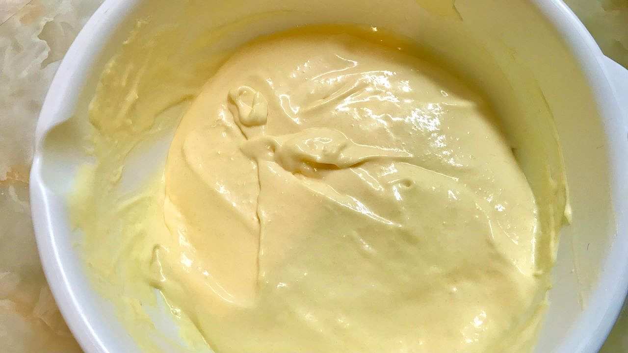 フレジエには、カスタードクリームにたっぷりのバターを混ぜ合わせた濃厚なクリーム(ムースリーヌクリーム)を使うのが一般的。