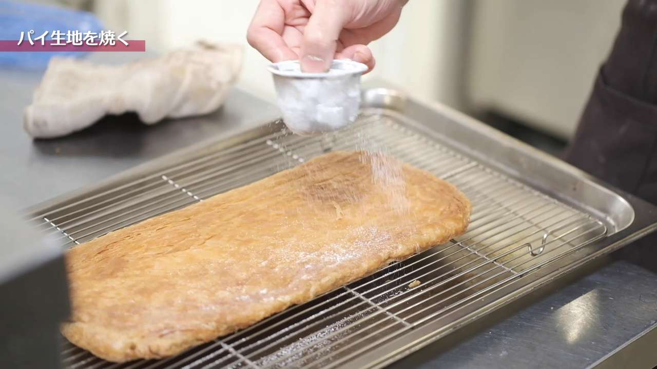 焼き上がった生地に粉糖をふりかけて、220℃~230℃に予熱したオーブンで3~4分間焼く。