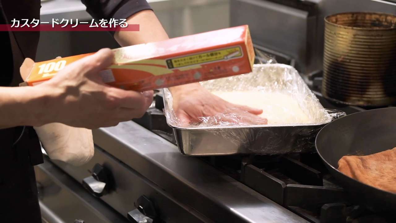 パイ生地用の牛乳と生クリームをよく冷やす。