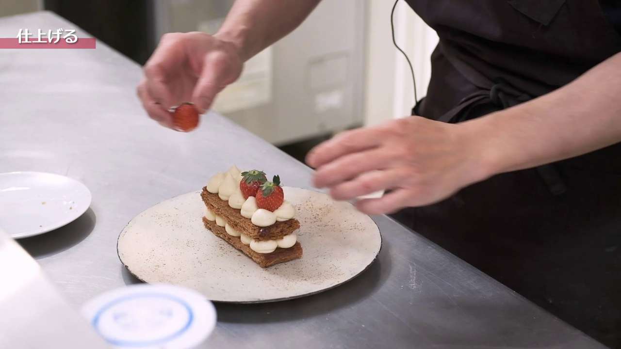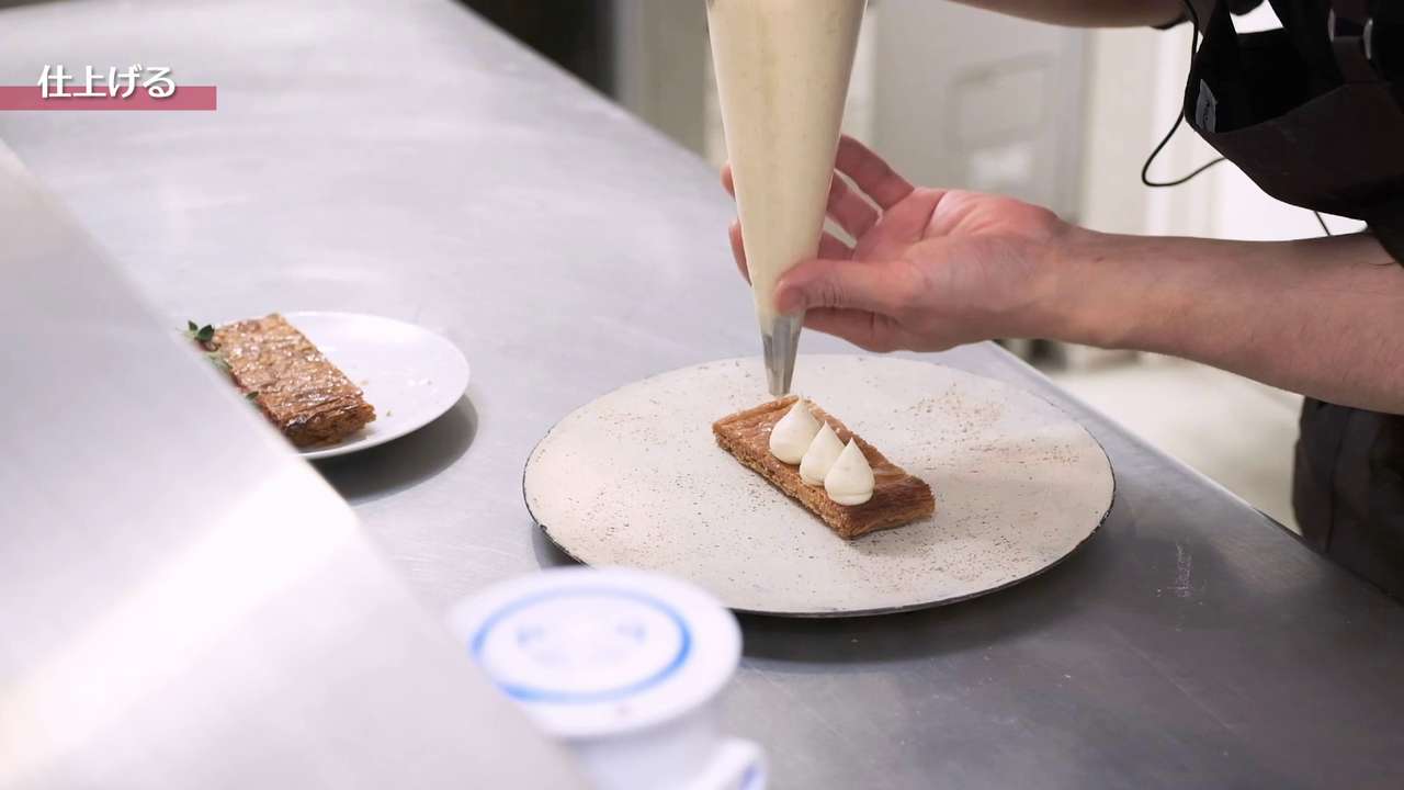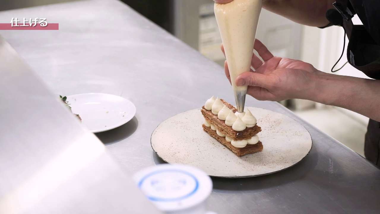 もう1枚パイ生地をのせて、再度ディプロマットクリームを絞る。