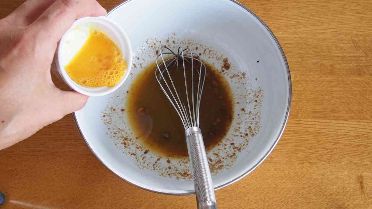 溶いた卵を加えてしっかりと混ぜる。- 4