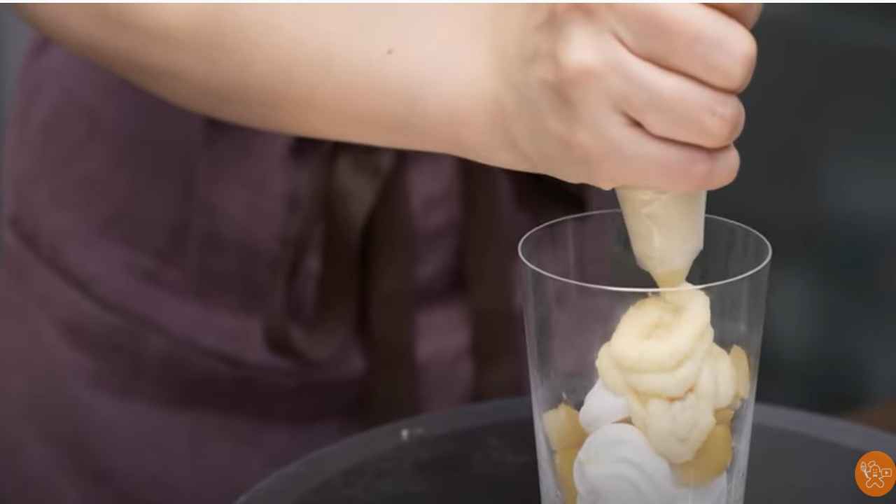 ※モンブランクリームの栗の甘露煮が口金に引っ掛かって絞りにくい場合は、丸口金の直径を大きくするとよい。