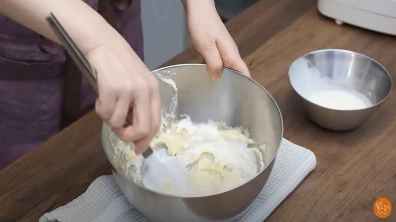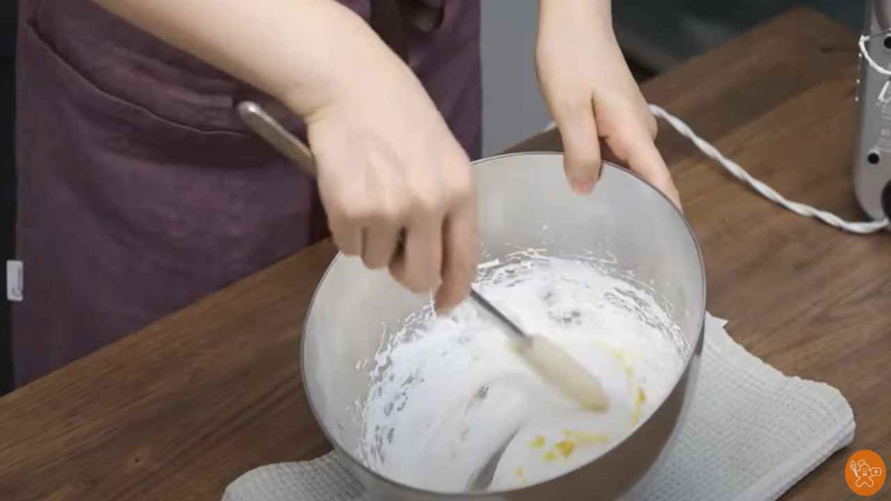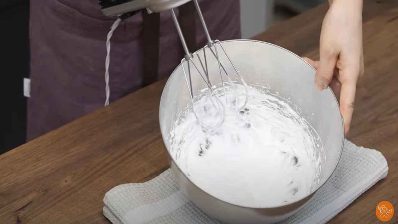 ※メレンゲはグラニュー糖の量が多く卵白が泡立ちにくくなるため、グラニュー糖を3回に分けて加えること。