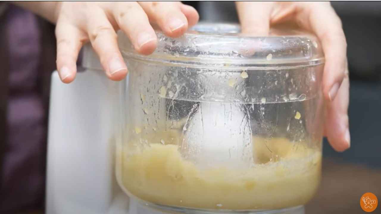 フードプロセッサーに栗の甘露煮と甘露煮のシロップを入れて細かく砕いてペースト状にする。