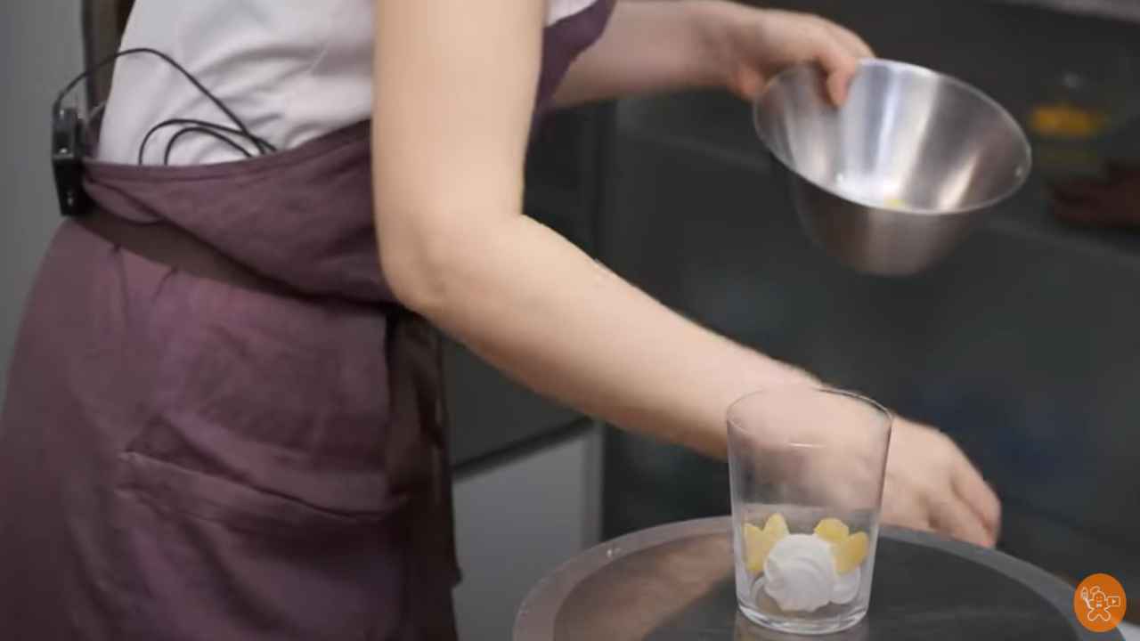 器にメレンゲクッキーとカットした栗の甘露煮を入れる。