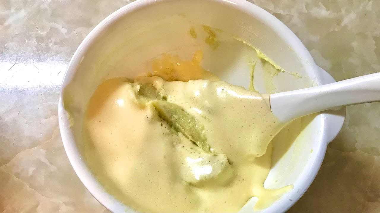 5と6の作業を再度繰り返します。生地にツヤが出てきたら混ぜは完了です。