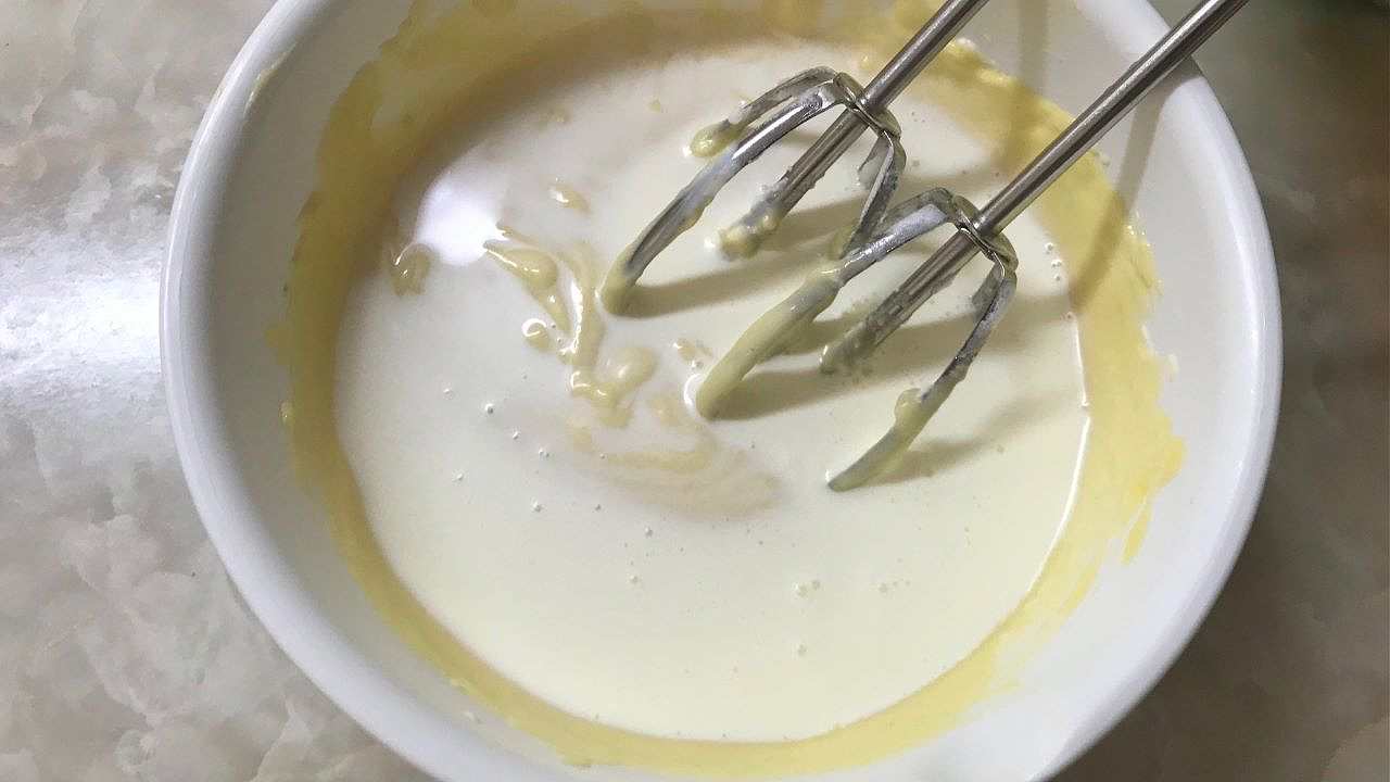 クリーム状になったら、裏ごしをしたさつまいも、生クリームの順に入れて更に混ぜ合わせます。