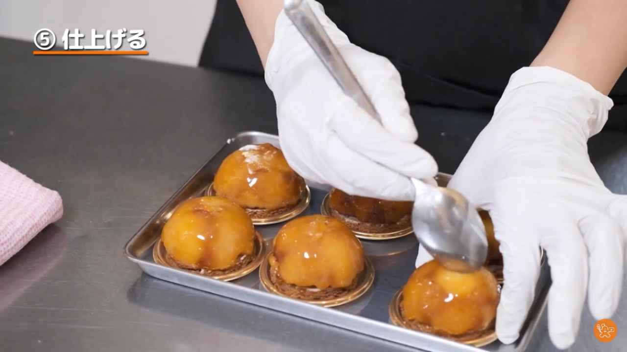タルトタタンの表面にアプリコットジャムを塗る。