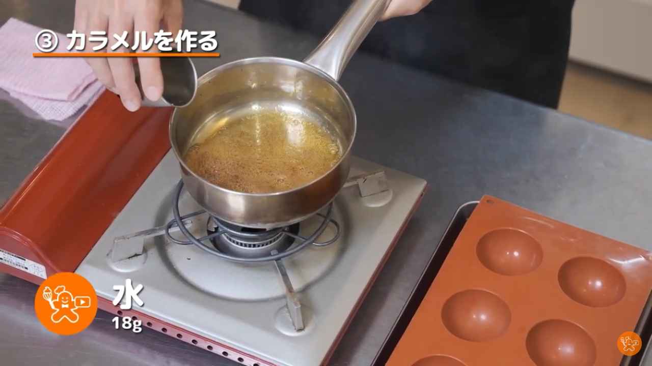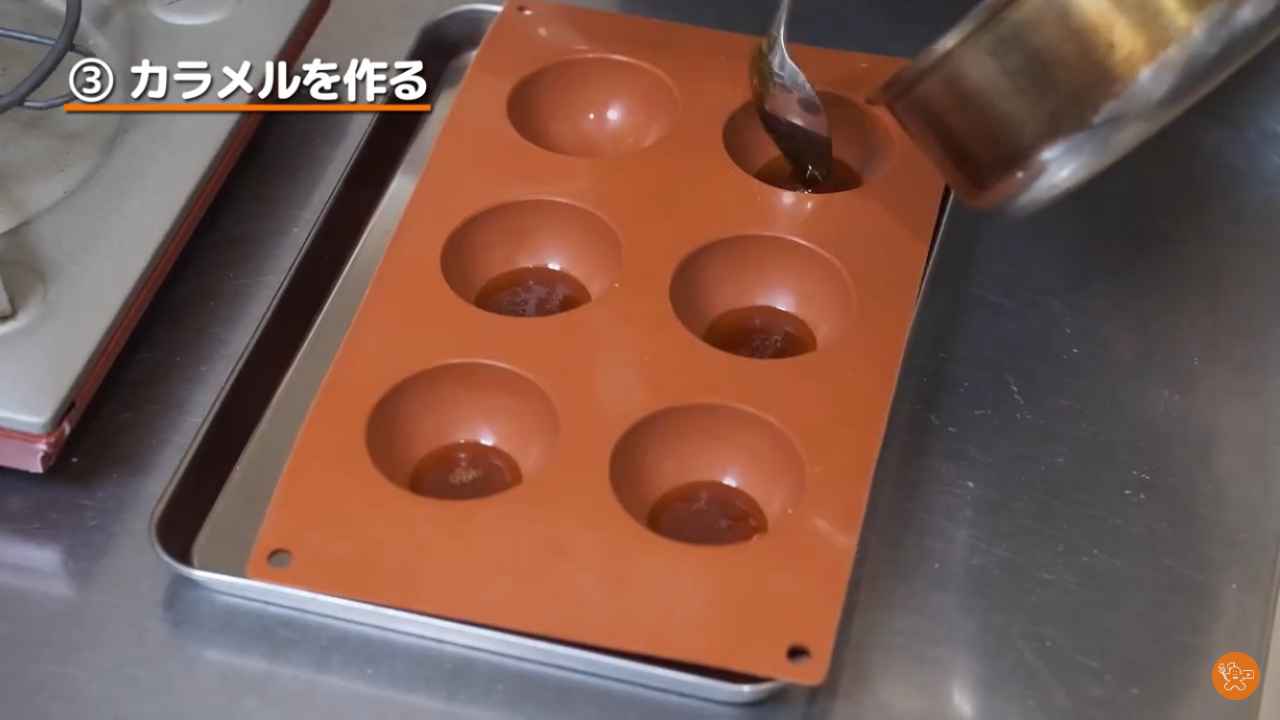 ドーム型にカラメルをスプーン1杯分ほど入れる。