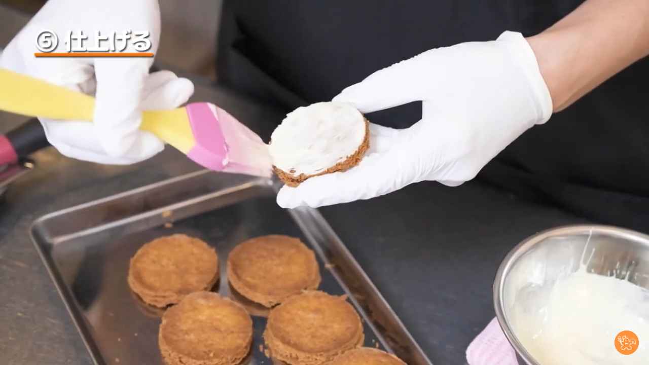 接着用に、カスタードクリームなどをトレイに塗る。